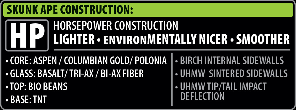 The Skunk Ape C2 snowboard is our experiMENTAL division big guy “dream board” project. Constant testing and refinement by Trevor Phillips, Snowboy’s Krush Kulesza and crew make this the best larger gentlemen power freestyle stick on the planet. Put it on rail, your toes won’t drag.