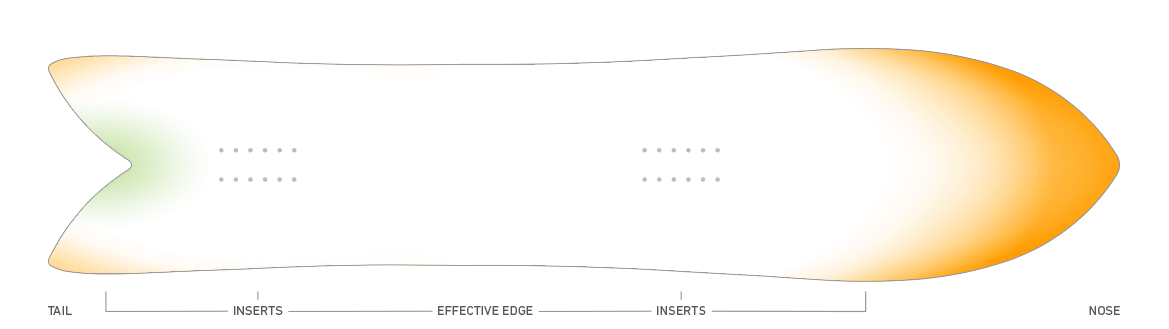 Our most advanced 3D-base contour pattern featuring distinct spoon bevel in the nose, moderate spoon bevel in the tail and a shallow Speed Channel between the tail edges. The concave SpeedChannel pushes loose snow out from under the board for added speed.