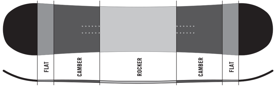Hybrid reverse camber with a convex base for a natural feel on rails and stability in variable conditions. Rocker profile combined with camber starting before the binding zones, I-ROCK provides stability and camber-like pop for peak to park performance.